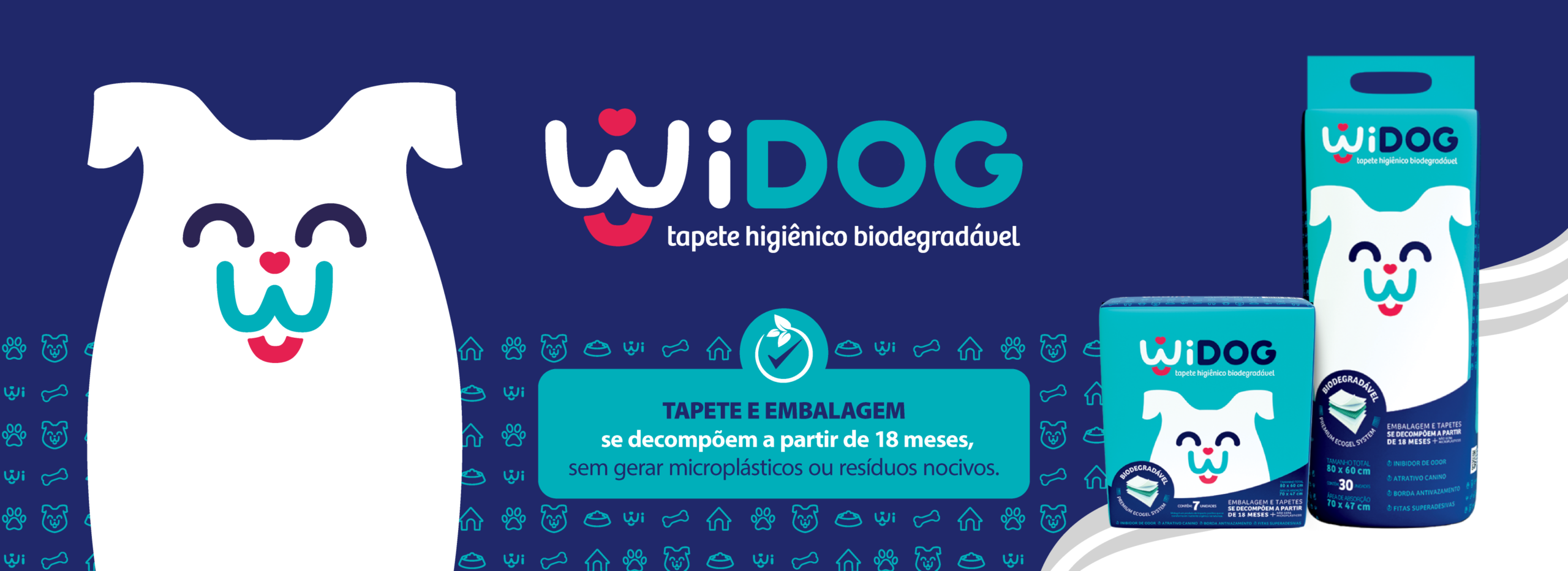 WIDOG é um tapete higiênico biodegradável que combina tecnologia avançada de ultra absorção, alta resistência, conforto para o cão e compromisso ambiental. Cada matéria-prima foi cuidadosamente selecionada para proporcionar máxima eficiência, controle de odores e descarte consciente.